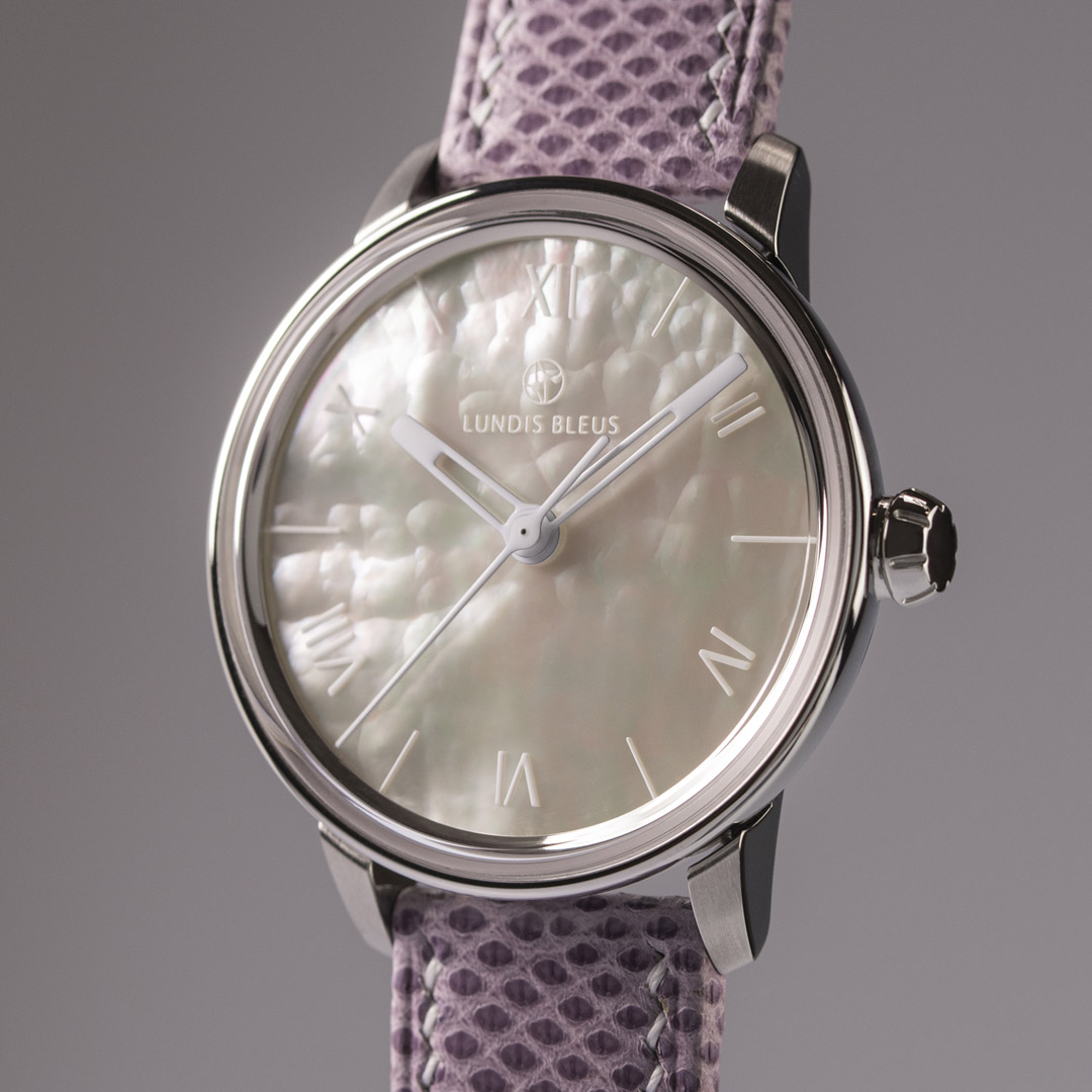 Natural mother-of-pearl with pad printing and custom leather strap