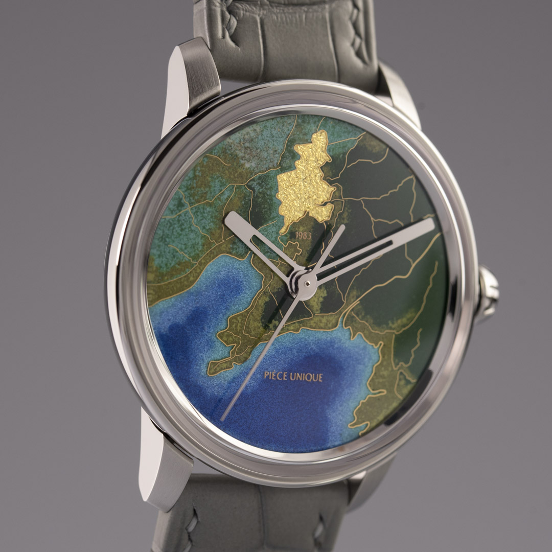 Vitreous enamel with pad printing and custom leather strap