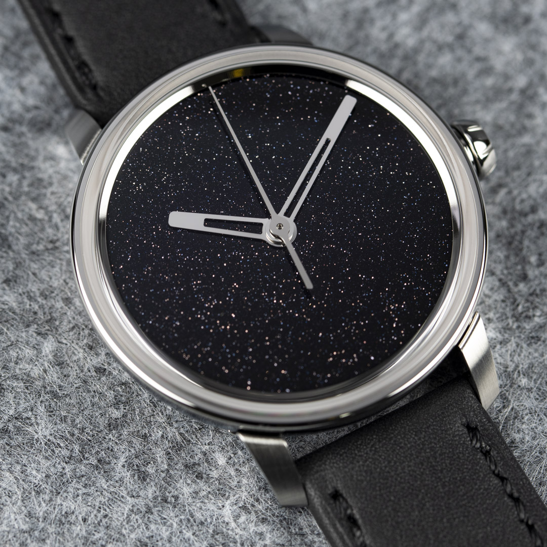 Man-made glass with pad printing and custom leather strap